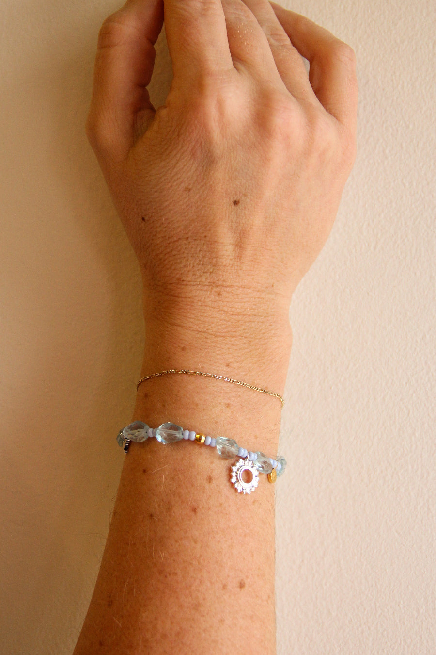 Colorful, one-of-a-kind beaded bracelet handmade by Sierra with metal accents and semi-precious gemstones. This necklace is part of the December Birthstone Capsule.