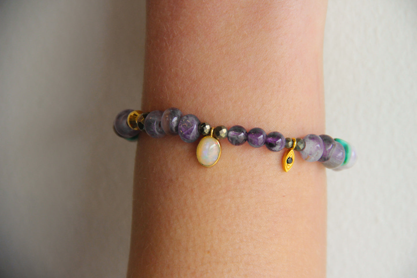 Features Amethyst, Turquoise, Pyrite, Ethiopian Opal, Black Spinel and 18k Gold Vermeil.