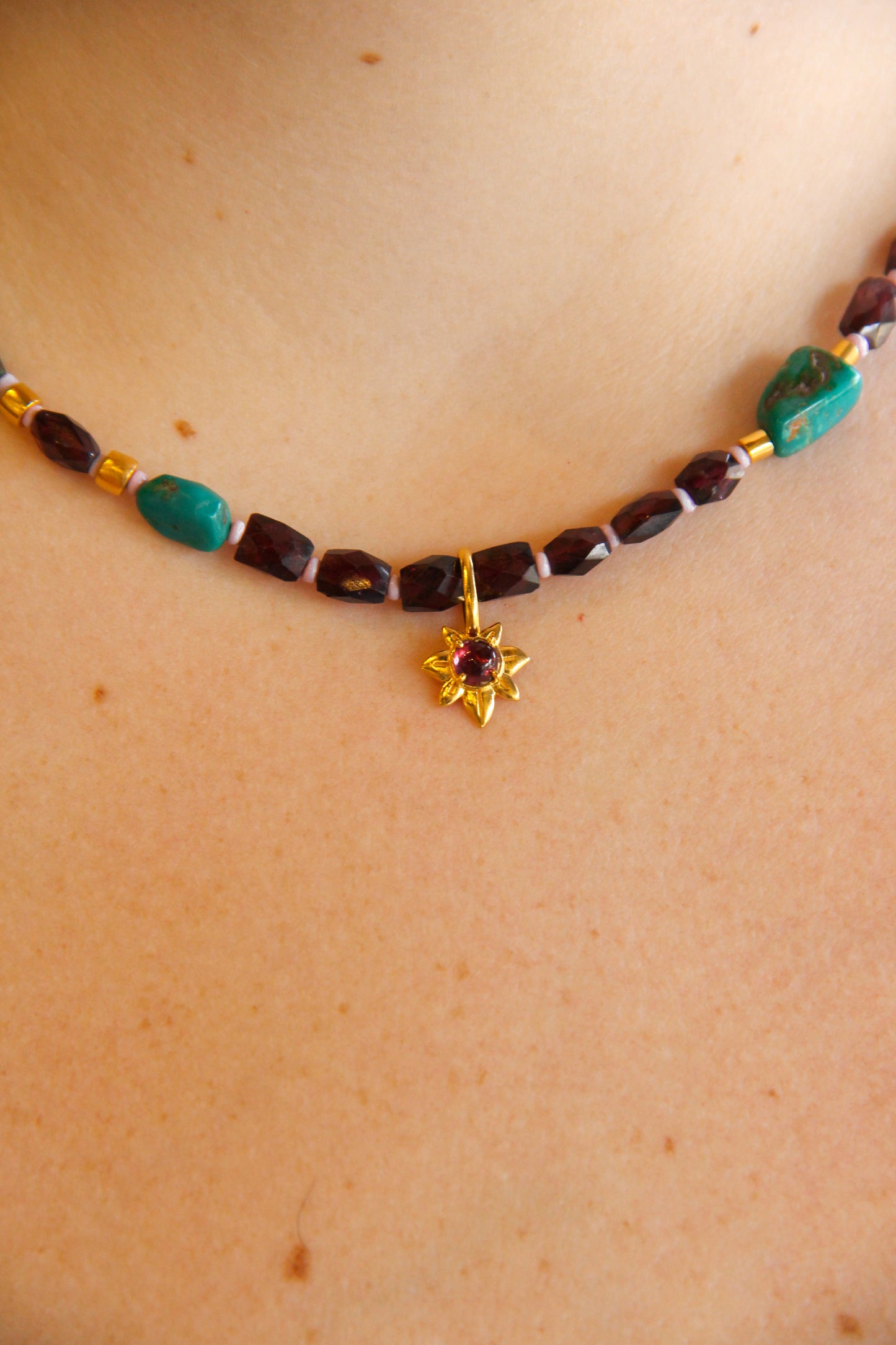 Features Garnet, Turquoise, 18k Gold Vermeil