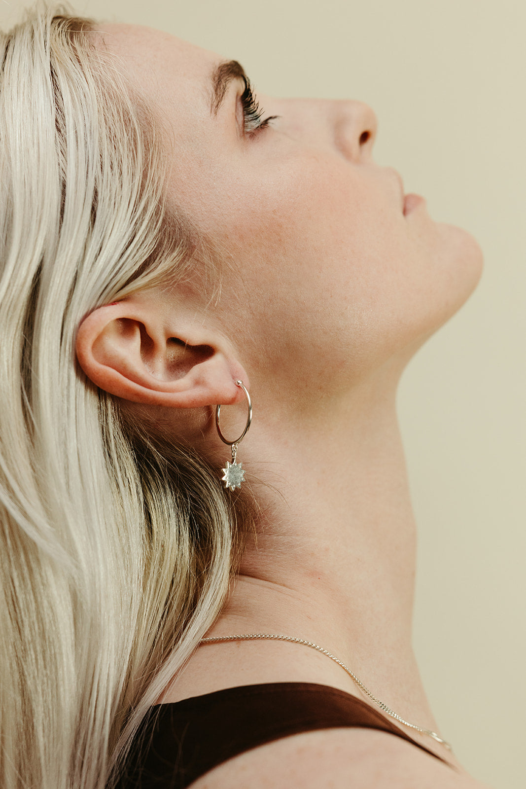 Made with a brass base and finished with sterling silver plating. Designed to offer the look and feel of silver while remaining lightweight, wearable, and accessible. Nickel-free and hypoallergenic.