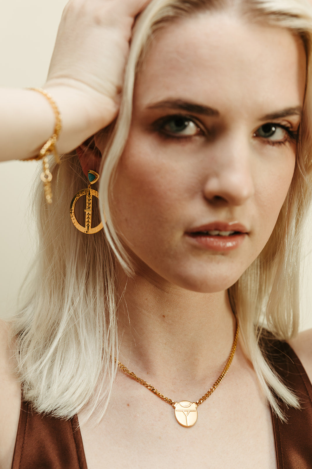 thick gold chain necklace scarab pendant