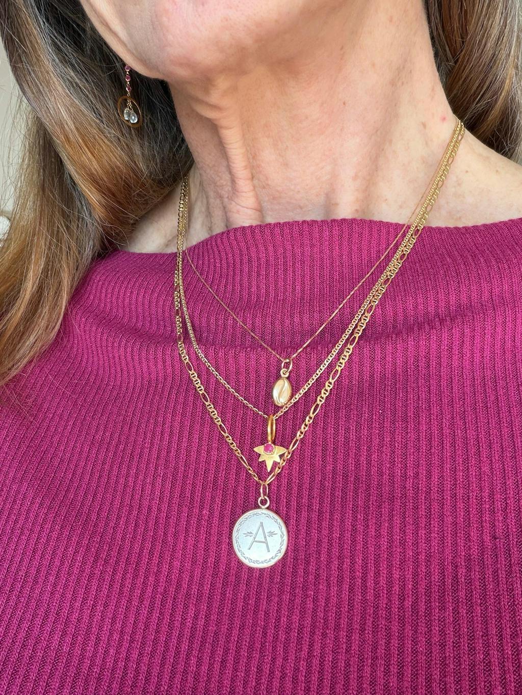This charm is the cutest addition to a neck stack. I also have the turquoise one, and they are frequent fliers on my chains and beaded necklaces